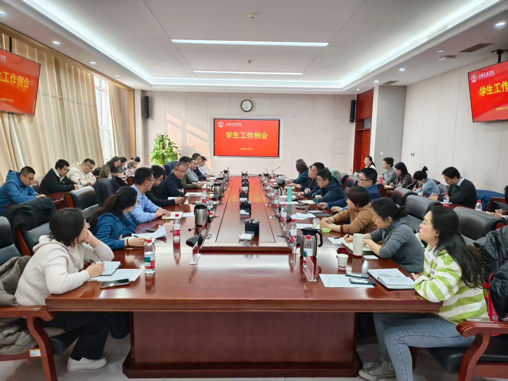 1月5日,学校在长清校区明德楼303会议室召开学期末学生工作例会,总结近期工作,部署下一阶段重点任务。学校党委副书记李贞涛主持会议并讲话。