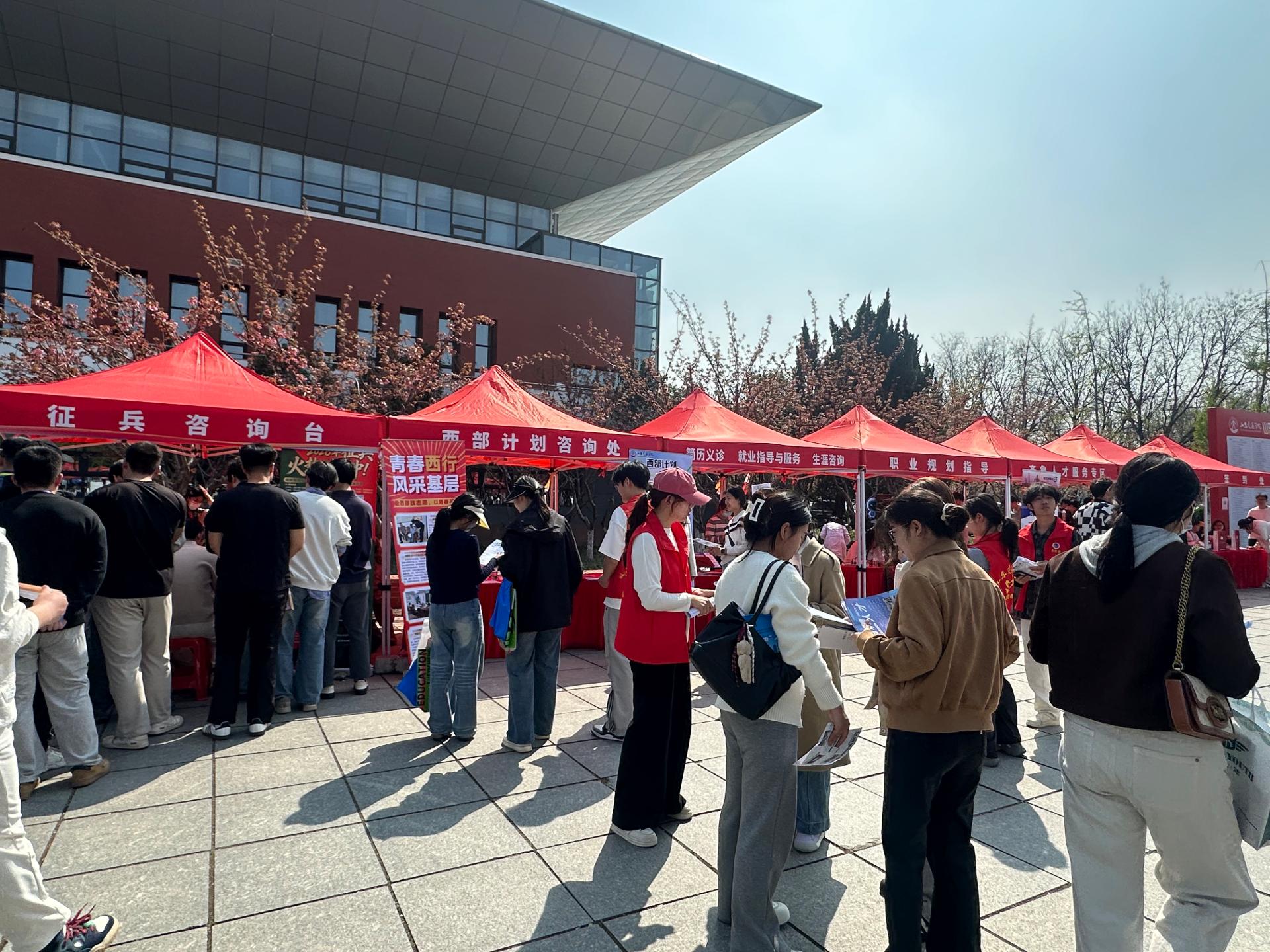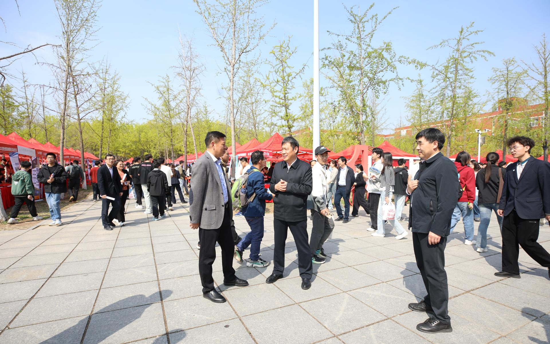 4月2日下午,学校在长清校区体育馆北广场举办2026年春季校园双选会。山东省教育厅高校学生处副处长张健;学校党委书记王伟,党委副书记聂法良,党委委员、副院长李秀领,党委委员、纪委书记、监察专员刘广东到双选会现场指导。