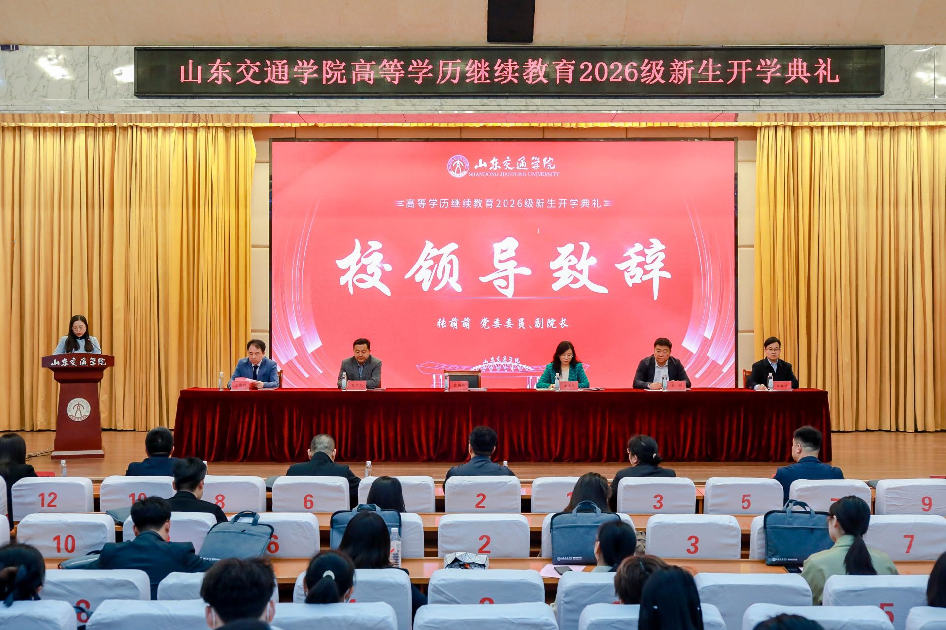 4月11日上午,学校在长清校区学术报告厅举行高等学历继续教育2026级新生开学典礼。学校党委委员、副院长张萌萌出席。