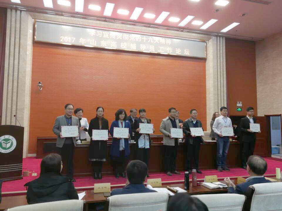 11月12日—13日,由教育部高校辅导员培训和研修基地(山东大学)主办的“2017年山东高校辅导员工作论坛”在济宁学院举行。论坛对2017年山东高校辅导员工作论坛获奖论文一、二等奖作者进行了表彰。我校工程机械学院周颜玲撰写的《传承弘扬中华优秀传统文化助推高校意识形态建设的若干思考》荣获论文一等奖。