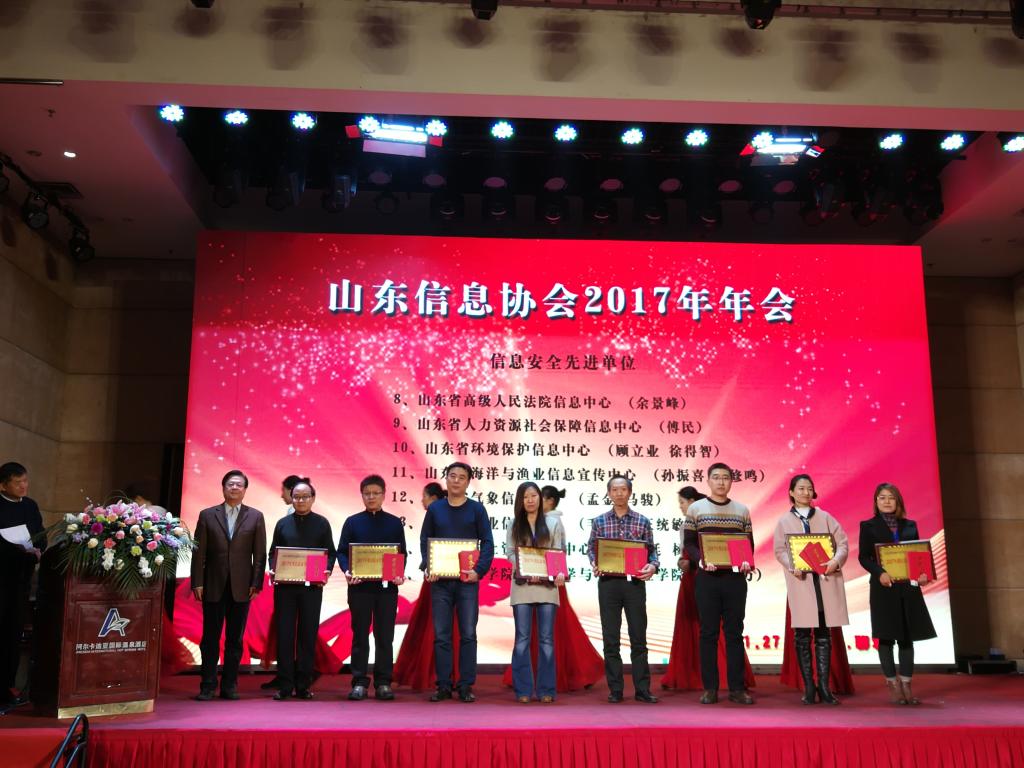 1月27日-28日,2017年山东信息协会年会暨山东省网络安全和信息化高端论坛在聊城召开。年会公布了山东信息协会2017年度“信息安全先进单位”、“协会工作先进单位”和“先进个人”。经过专家严格评审,我校信息科学与电气工程学院被评为2017年度“信息安全先进单位”,朱振方老师被评为“先进个人”。
