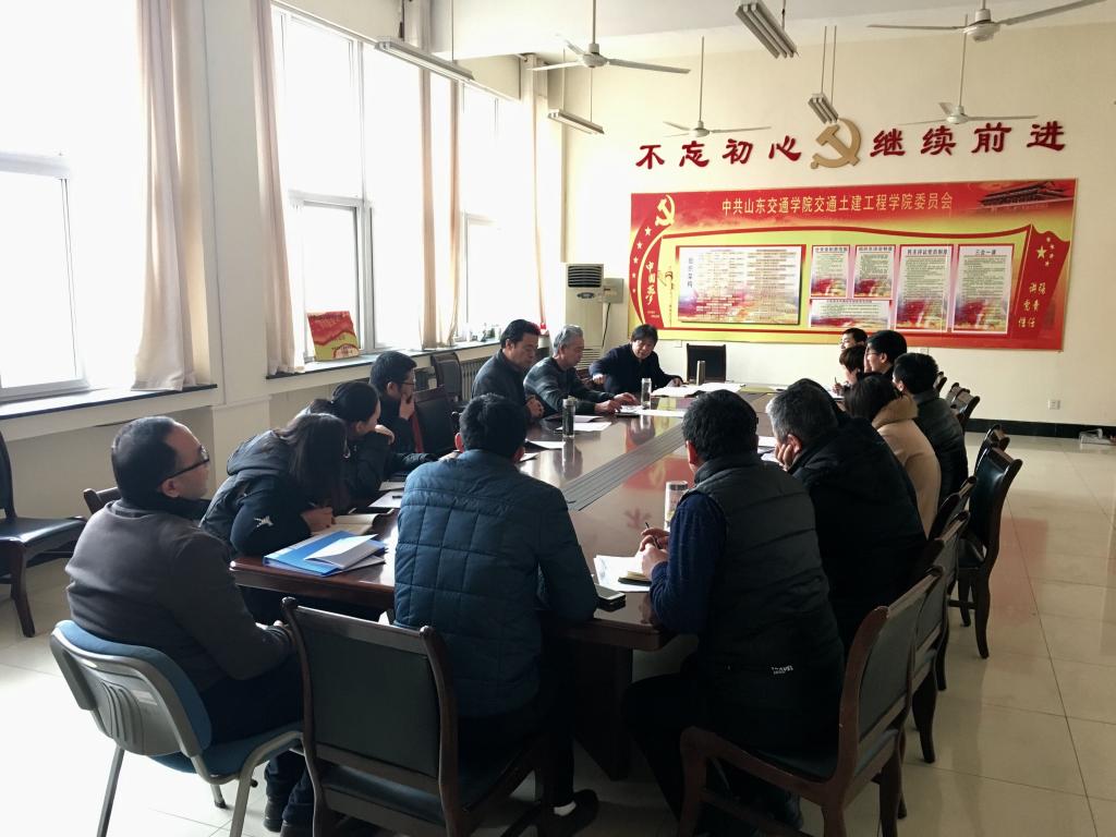 近日,交通土建工程学院连续召开党政联席会、全体职工大会和党支部书记专题会,全面贯彻落实学校2018年工作部署暨解放思想大讨论动员会议精神,认真学习党委书记孙秀丽,党委副书记、院长陈松岩在会上的讲话精神和《山东交通学院2018年工作要点》,研究部署了学院2018年发展任务计划。