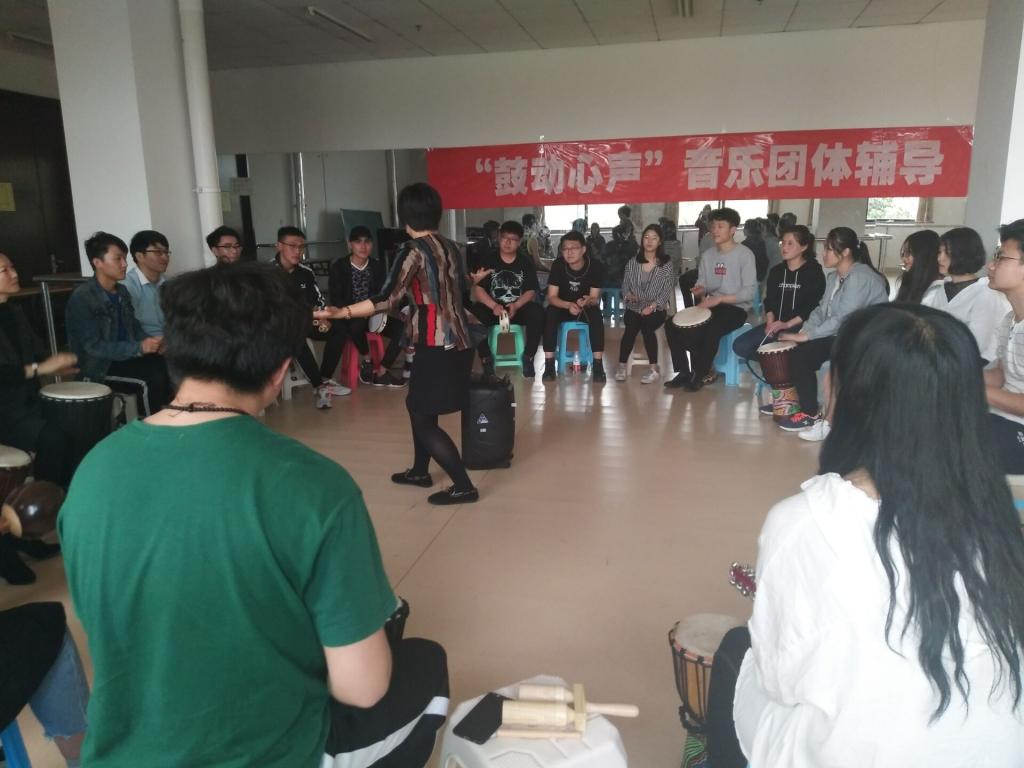鼓圈是一种自由的敲击乐器的音乐创造形式。大家围坐一圈,用手中的鼓与他人对话,一同用节奏打破相互之间的陌生与隔阂,用音乐放松身心、改善情绪、减小压力、促进自我。此次团体辅导以独特设计的音乐破冰活动引入,紧接着同学们从自由击打到逐渐熟悉鼓圈的节奏,在指挥循序渐进、充满热情的引领下,大家共同演奏出一段段欢乐而热烈的音乐,将活动带入高潮。活动最后由引导者选用自然界各种声音合成的背景乐使成员们平静情绪、回味过程,增强减压的效果。参与者于活动前后分别填写了一份情绪量表,数据统计显示本次鼓圈活动收效良好,同学们在放松和快乐这两个维度的情绪得到了显著提升。