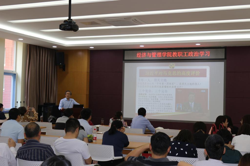 近日,经济与管理学院组织师生集中学习习近平总书记在北京大学师生座谈会上的重要讲话精神和习近平在纪念马克思诞辰200周年大会上的重要讲话精神,学院1000余名师生参加了学习。