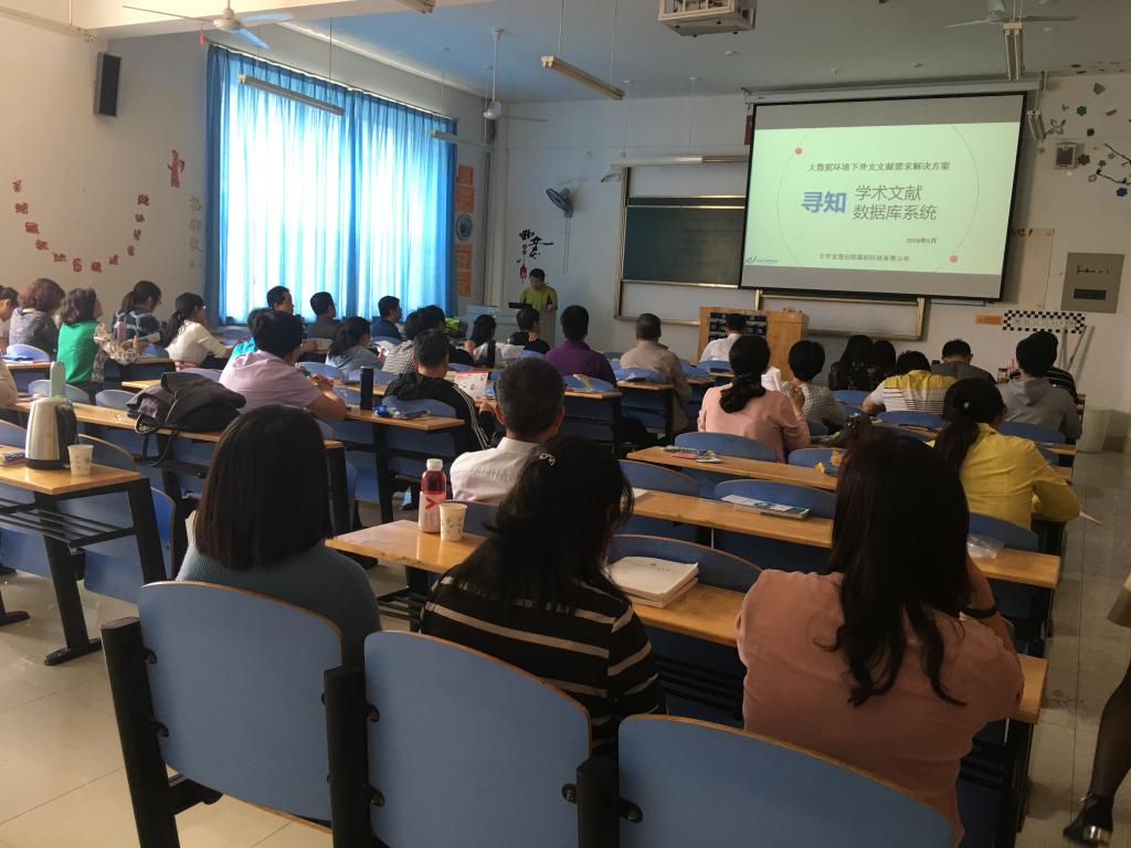 近日,图书馆在理学院举办寻知学术文献系统数据库专题培训讲座,理学院全体教师参加了讲座。