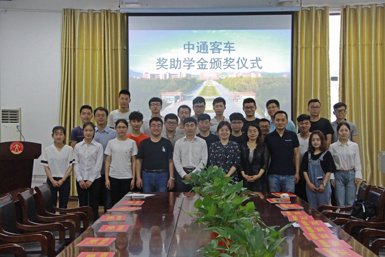 仪式上,汽车工程学院相关负责同志感谢中通客车长期以来为我校优秀学生设立奖助学金,鼓励先进、奖优促学,充分体现了社会对大学生成长成才的关心。随后,杨奇勇、杨小刚为22名奖学金获得者颁奖,其中12名同学获得助学金1000元,10名同学获得特别助学金2100元。杨奇勇对获奖同学表示了祝贺,并感谢学院为企业输送的大批优秀人才。