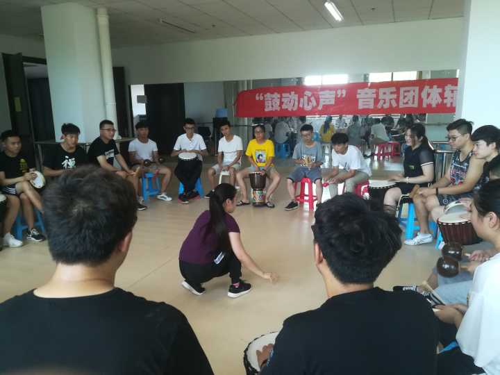 第一期心理辅导重在团队建设,同学们通过破冰游戏、自我介绍、签订团体协议、选择并齐唱团队歌曲等活动增加彼此的了解和信任,消除陌生感。第二期心理辅导以鼓圈为主要表现形式进行,引领师首先带领同学们学习腹式呼吸和肌肉放松等常用减压方法,随后运用富有节奏感、注重团队配合的鼓圈演奏帮助学生感知并转化负面情绪,降低焦虑水平。活动结束后,同学们纷纷表示在丰富有趣的活动中增强了迎接期末考试的信心。