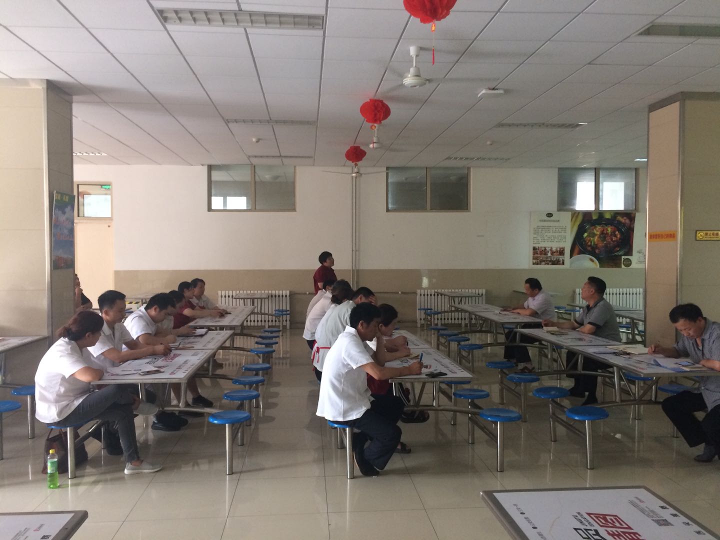 6月19日下午,两个食堂分别组织班组负责人开展“如何进一步提升食堂安全、规范和服务水平”解放思想大讨论主题活动,班组负责人就本班组在抓好食品安全、规范生产和提供优质服务方面的先进经验、存在的不足、今后改进的具体措施以及推动食堂管理规范化的意见和建议等发言、讨论,食堂形成报告,列问题清单,立行立改,抓工作落实。