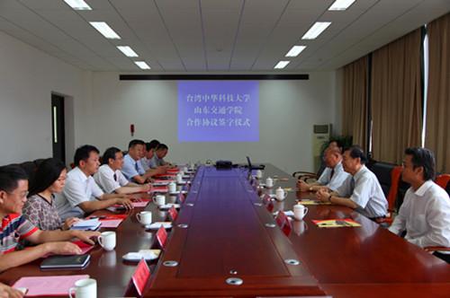 6月4日至6日,台湾中华科技大学董事长孙永庆一行4人来我校访问并签署合作协议。来访期间,学校领导李军、鹿林、徐晓红、陈松岩会见了客人一行。 6月5日上午,我校与台湾中华科技大学合作签约仪式在长清校区办公楼六楼会议室举行。仪式上,院长鹿林向客人介绍了我校的发展历程和路海空轨综合交通运输人才培养专业格局的建设情况,孙永庆董事长介绍了台湾中华科技大学的发展历程和发展理念。鹿林与孙永庆分别代表双方签署了山东交通学院与台湾中华科技大学合作协议书。仪式由副院长陈松岩主持。 学校办公室、人事处、宣传统战部、教务处、财务处、学生工作处、港澳台事务办公室、航空学院等有关单位、部门负责人参加了会议。 据悉,台湾中华科技大学与我校将本着“优势互补、共同发展、平等互利”的原则,成立联合办学协作组,实行“2+1+1”合作办学模式。(办公室 航空学院 文/刘佃瑞 图/张开文)