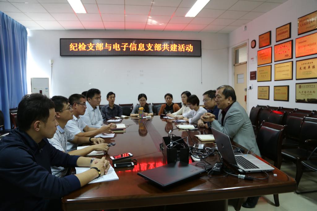 为全面贯彻党的十九大精神,进一步加强基层党组织建设,提升支部党建工作水平,9月26日,信息科学与电气工程学院电信党支部与纪检党支部在信电学院会议室举行党支部“全面结对 全面过硬”共建活动及学习交流会。