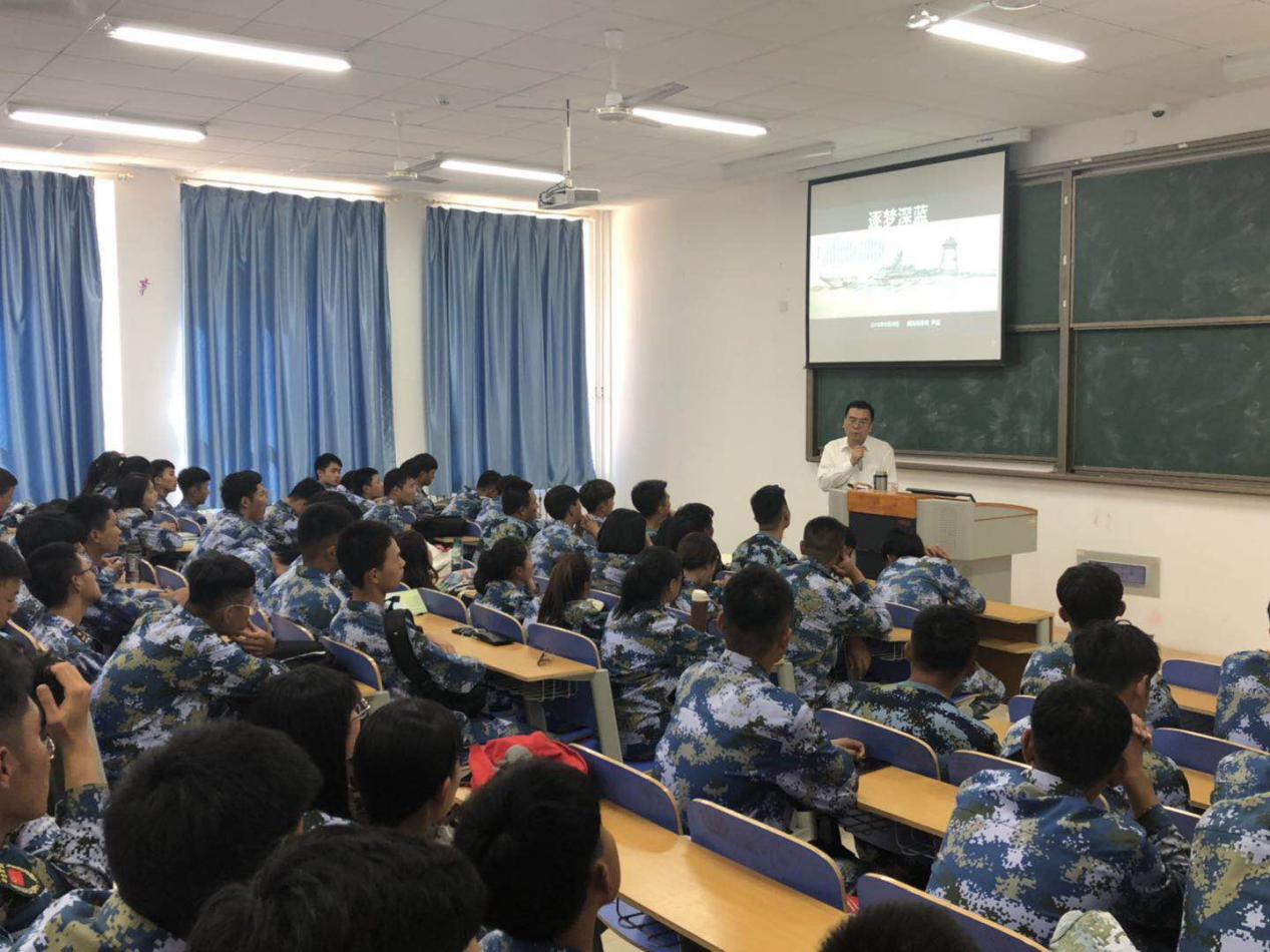 集体学习结束后,尹磊为航海学院2018级新生作了《逐梦深蓝——如何做好奉献航海强国之路》专题报告。尹磊从航海技术的发展历史、航海专业知识和就业方向、学生的自我管理和必备素质三个方面,为同学们展示了世界航海发展历程及新中国海运事业的光辉成就,坚定了大家为海洋强国战略奉献自我的决心。