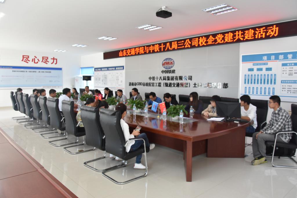 9月28日,交通土建工程学院教工第五党支部与图书馆党支部在中铁十八局第三工程有限公司济南市CBD区间隧道项目部举行结对共建活动。