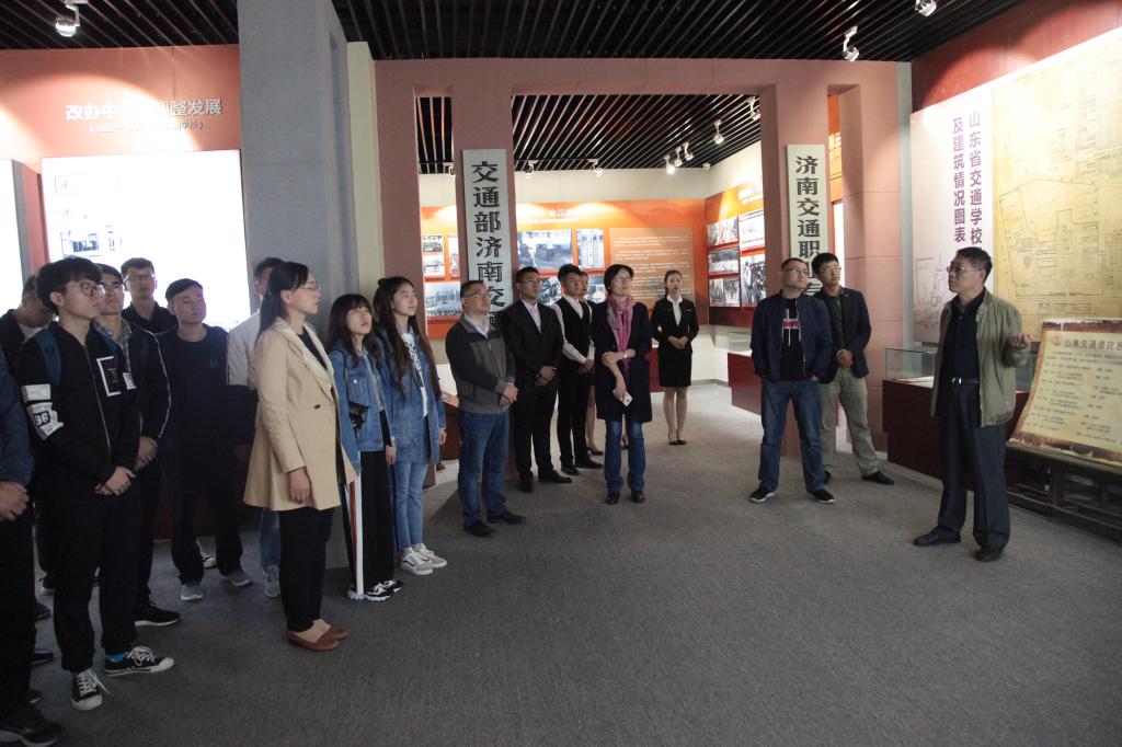 活动中,党委宣传统战部党支部书记娄进举带领师生党员依次参观了校史馆“序厅、初建家园、文革动荡、恢复发展、再次创业、务实跨越、硕果累累和展望未来”等八大展厅,馆内丰富的图文资料、珍贵的校史文物生动再现了交院60余年的发展。娄进举以新中国发展历史为背景,以交通部和山东省交通教育史为主线,为大家详细讲述了学校发展中的重要事件,描绘出学校波澜壮阔的创业历程,再现了交院人“艰苦奋斗,自强不息”的创业史、“爱校 敬业 务实 创新”的坚守史、“明德至善 格物致知”的耕耘史。
