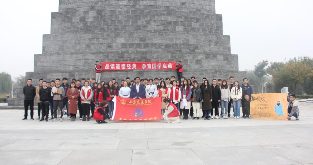 本次活动以“品读国学经典,感受文化交院”为主题,依托济南国际园博园的孔子广场、济宁园特色文化园区,结合《大学》《道德经》等国学经典开展,包含领读经典、共享国学、心灵契约三个环节。在国学社成员的领读中,同学们纷纷上前争当“领读者”,现场气氛热烈。