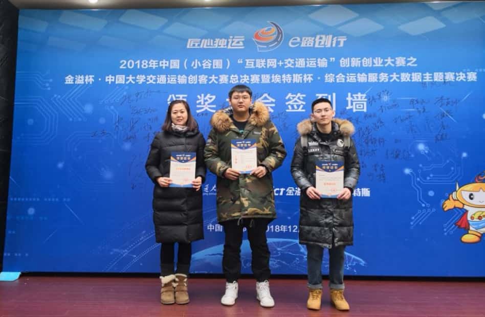 近日,2018年中国(小谷围)“互联网+交通运输”创新创业大赛之金溢杯·中国大学交通运输创客大赛在四川成都落下帷幕。我校交通与物流工程学院“思源智造”代表队(指导教师:张萌、邓涛成)在决赛中获得三等奖。我校团委积极组织学生参赛,前期共计19项作品晋级国赛初选阶段,我校获得“优秀组织奖”。
