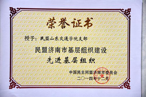 12月21日,民盟济南市十二届五次全委(扩大)会议在济南召开,会议推荐表彰在 2014年盟务工作表现突出的基层盟组织和个人,我校民盟支部荣获“2014年山东民盟思想宣传工作先进集体”称号,同时荣获“民盟济南市基层组织建设先进基层组织”称号。(民盟山东交通学院支部 文图/华相纲)
