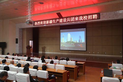10月21日上午,新疆生产建设兵团招聘团队校园专场招聘会在我校长清校区学术报告厅举行。学校学生工作部(处)、各相关二级学院相关工作人员及200余名毕业生参加了现场宣讲和招聘活动。 招聘会上,新疆生产建设兵团人才服务中心市场信息部副部长徐强介绍了兵团的发展情况、人才需求情况以及人才引进等相关优惠政策。会后,参加现场招聘的毕业生积极与各用人单位进行交流和洽谈,学生表现出的良好的综合素质得到了用人单位的充分肯定,最终近30名毕业生顺利签约。(学生工作部(处) 文/朱鸿义 图/王大生)