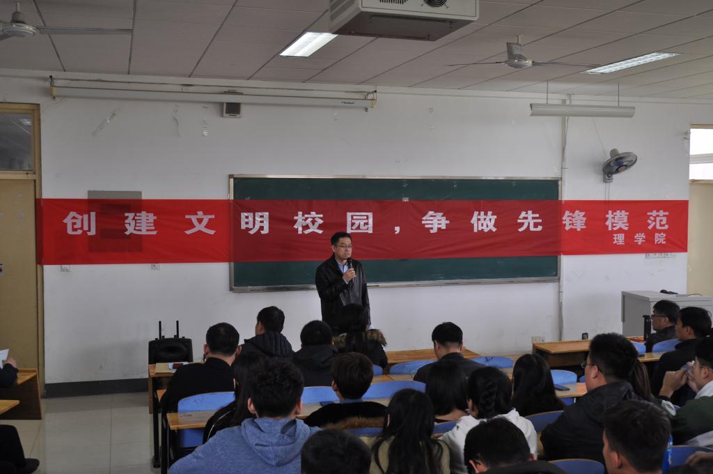 为充分发挥党支部的战斗堡垒作用和党员的先锋模范作用,扎实做好创建文明校园工作,4月10日下午,理学院举办“创建文明校园,争做先锋模范”创建文明校园系列活动启动仪式。理学院分党委书记单宝森、党员教师代表、全体学生党员和学生干部参加活动。