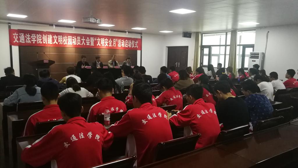 4月24日下午,交通法学院在长清校区工程中心2C502举行创建文明校园动员大会暨“文明安全月”活动启动仪式。保卫处处长刘佃瑞、交通法学院党总支书记闫淼、教师及学生干部代表共同参加本次活动。
