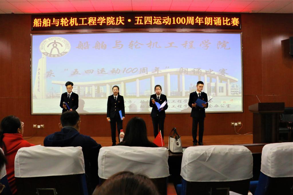 为纪念五四运动100周年,弘扬五四精神,落实学校关于创建省级文明校园工作部署,4月24日,船舶与轮机工程学院举办了以“践行核心价值观、凝聚最美中国梦”为主题的庆“五四运动100周年”朗诵比赛。共有30支队伍150余人参赛。