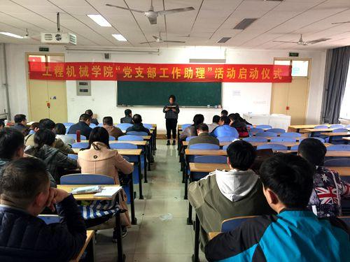 为认真贯彻落实“两学一做”学习教育,打造过硬基层党支部,3月15日下午,工程机械学院在长清校区2C201举行“党支部工作助理”活动启动仪式。学院首批“党支部工作助理”、学院师生党员共80余人参加了本次活动。 启动仪式上,学院党建负责人指出,“党支部工作助理”是工程机械学院基层党建工作的创新形式,希望全体党员通过“党支部工作助理”活动的实施,加强教工党支部和学生党支部之间的合作交流,增强对学生的政治引领和人文关怀,真正将“两学一做”学习教育落到实处。学院行政负责人宣读了《工程机械学院关于开展“党支部工作助理”活动的通知》,学院学生工作负责人宣读了学院首批 “党支部工作助理”人员名单。随后,首批“党支部工作助理”和教工党支部书记代表作了表态发言。 据悉,“党支部工作助理”活动以推动师生党员之间的交流、推动师生党建工作联动为主要目标,为每个教工党支部选配一名优秀学生党员担任党支部工作助理,力图给学生党员提供一个很好的锻炼平台,使骨干学生党员在协助教工党支部做好党建工作的同时,加强对自身的继续教育,全面提高自身素质。(工程机械学院 文/周颜玲 图/滕昆)