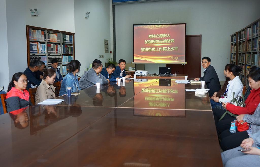 活动中,全体党员共同学习了习近平总书记在纪念五四运动100周年大会上的重要讲话等文件精神。图书馆馆长刘一石作主题为“坚持立德树人 加强思想品德修养, 推进各项工作再上水平”的党课。大家围绕习近平总书记“立德树人”重要思想,结合工作实际展开深入讨论。大家一致表示,要把党建工作与日常工作紧密结合,共同为学校“1245”攻坚行动添砖加瓦。