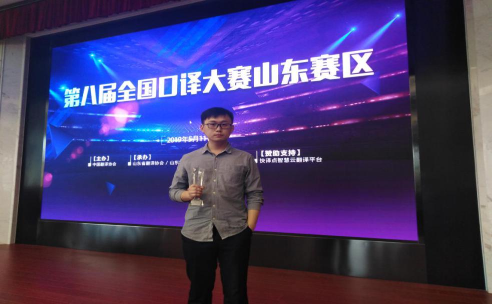 5月11日,第八届全国口译大赛(英语)山东赛区复赛在山东省外事服务大厅顺利举行,共有来自全省各高校的115名选手参赛。我校外国语学院教师尉策指导的英升183班学生吕超荣获一等奖第一名,获得“山东口译之星”称号,并将代表山东省参加第八届全国口译大赛(英语)华东区赛。我校参赛选手在名校口译专业研究生参赛的情况下,迎难而上,勇于拼搏,最终取得优异成绩,充分展示了外国语学院学生扎实的专业理论基础和较强的翻译实践能力,显现了我校应用型人才培养的成效。