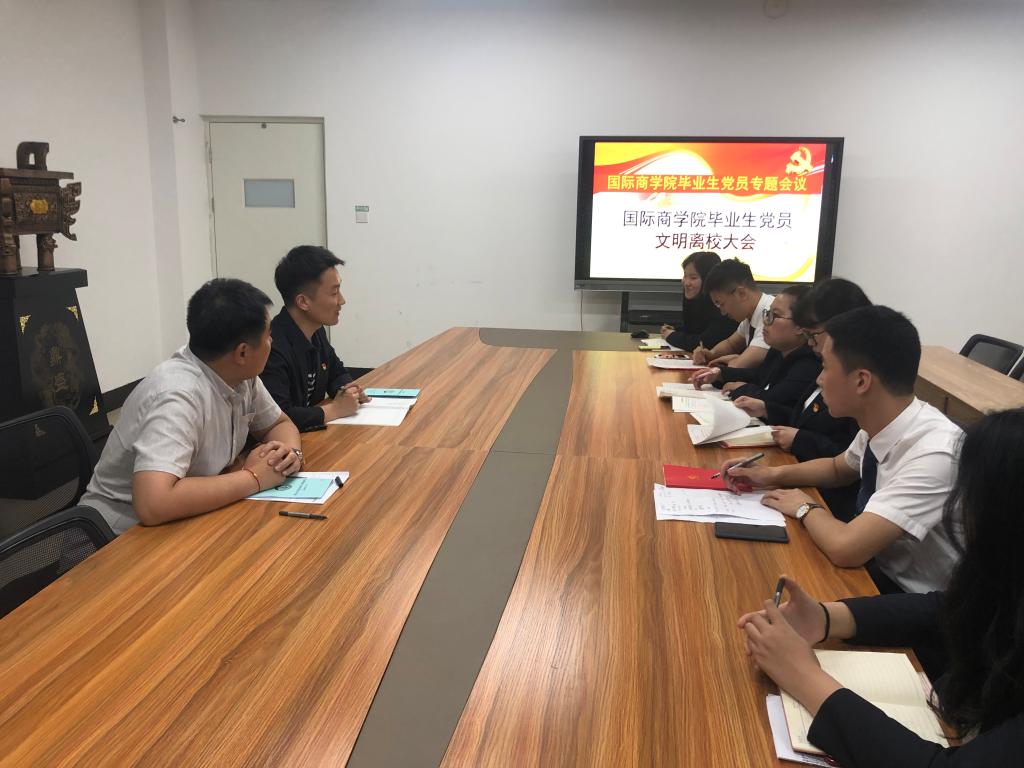 6月4日,国际商学院在威海校区2B410会议室举行毕业生党员文明离校专题会。国际商学院党总支组织委员、辅导员以及2019届全体毕业生党员参加会议。
