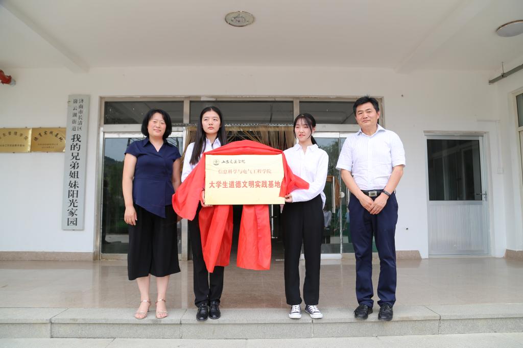 文明交院,情暖端午。6月5日,信息科学与电气工程学院“大学生道德文明实践基地”揭牌仪式在崮云湖街道养老服务中心举行,学院分党委书记魏丙刚、长清区崮云湖街道社会事务科科长扬静等参加揭牌仪式。
