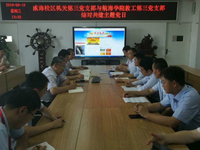 6月19日,航海学院教工第三党支部、威海校区机关第三党支部在教学楼B424举行了“全面结对 全面过硬”结对共建活动。航海学院党总支书记李西田、两个党支部全体党员参加了活动。