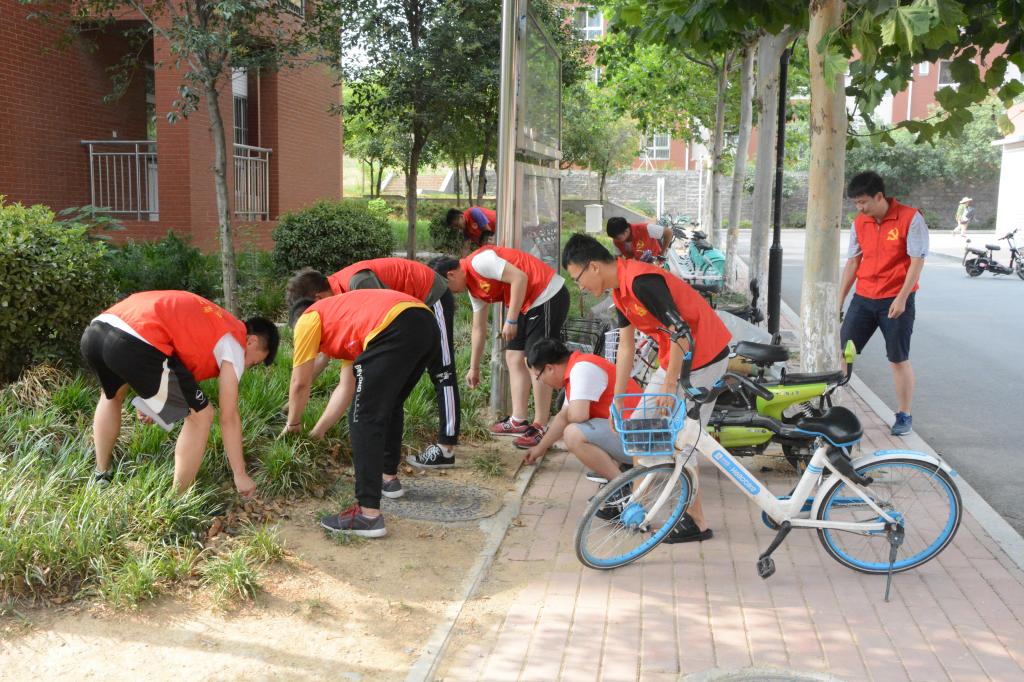 为发挥党员先锋模范作用,助力省级文明校园创建,营造干净整洁的校园环境,6月25日下午,工程机械学院组织毕业生党员在7号、9号等学生公寓楼前开展“创建文明校园,站好最后一班岗”主题党日活动。