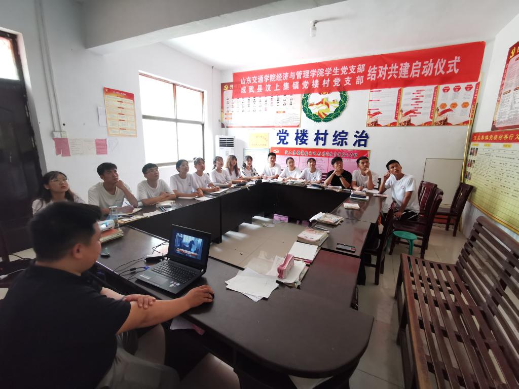 董文祥给志愿者们播放了一则齐鲁先锋的报道,该报道讲述了我校驻村“第一书记”工作组扎根基层、认真履职、全心全意为贫困村、贫困户办实事、谋发展的先进事迹。随后,他又具体给志愿者们讲述了“第一书记”的含义和责任,并向志愿者们讲述了新中国成立以来我国扶贫思想的变化过程以及精准扶贫政策。