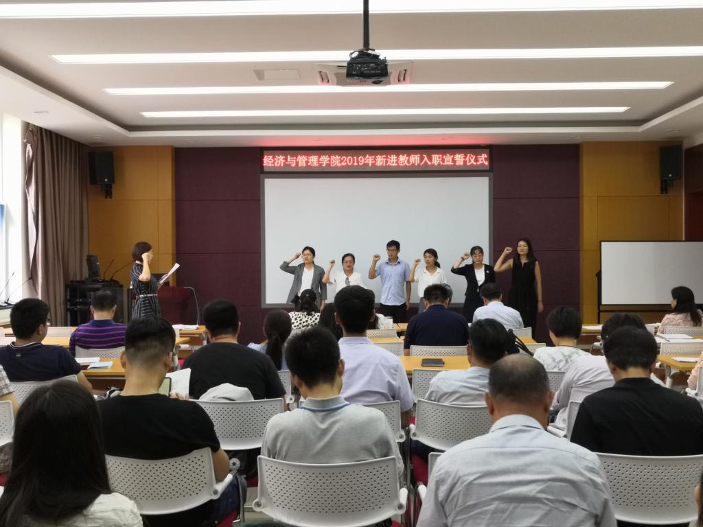 为加强对新进教师的培养,帮助他们尽快胜任教学、科研等工作,9月4日下午经济与管理学院在1B104隆重举行2019年新进教师导师聘任及入职宣誓仪式。仪式由副院长聂云霞主持,全体教师参加了仪式。