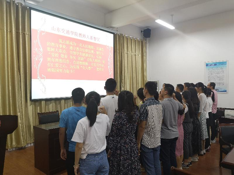 会后,学院举行了新进教师入职宣誓仪式,副院长吴娜领誓,学院全体教师参加宣誓仪式。