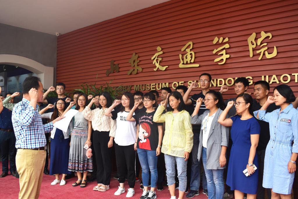 新进教师在校史馆讲解员的介绍下认真学习了我校的光荣历史,依次参观了校史馆内的九大展厅,馆内珍贵的文字史料和丰富的图片影像,生动地记录了我校自1956年创校以来的点滴足迹、办学进程和文化传承。春去秋来六十余载,一代代交院人的故事令人动容,当看到我校第一任校长蔡瑞霖用过的工作笔记、手表,获得过的奖章、证书时,当听到“全国先进工作者”李笃政从一名汽车驾驶员成长为我校优秀大学专业教师的奋斗史时,教师们深切感受到了“交院人精神”之所在,纷纷表示不仅要学习先辈们的精神,更要将知校、爱校、护校、荣校转化为自觉的行动追求和前进的不竭动力,做学生的好教师,做合格的“筑梦人”。