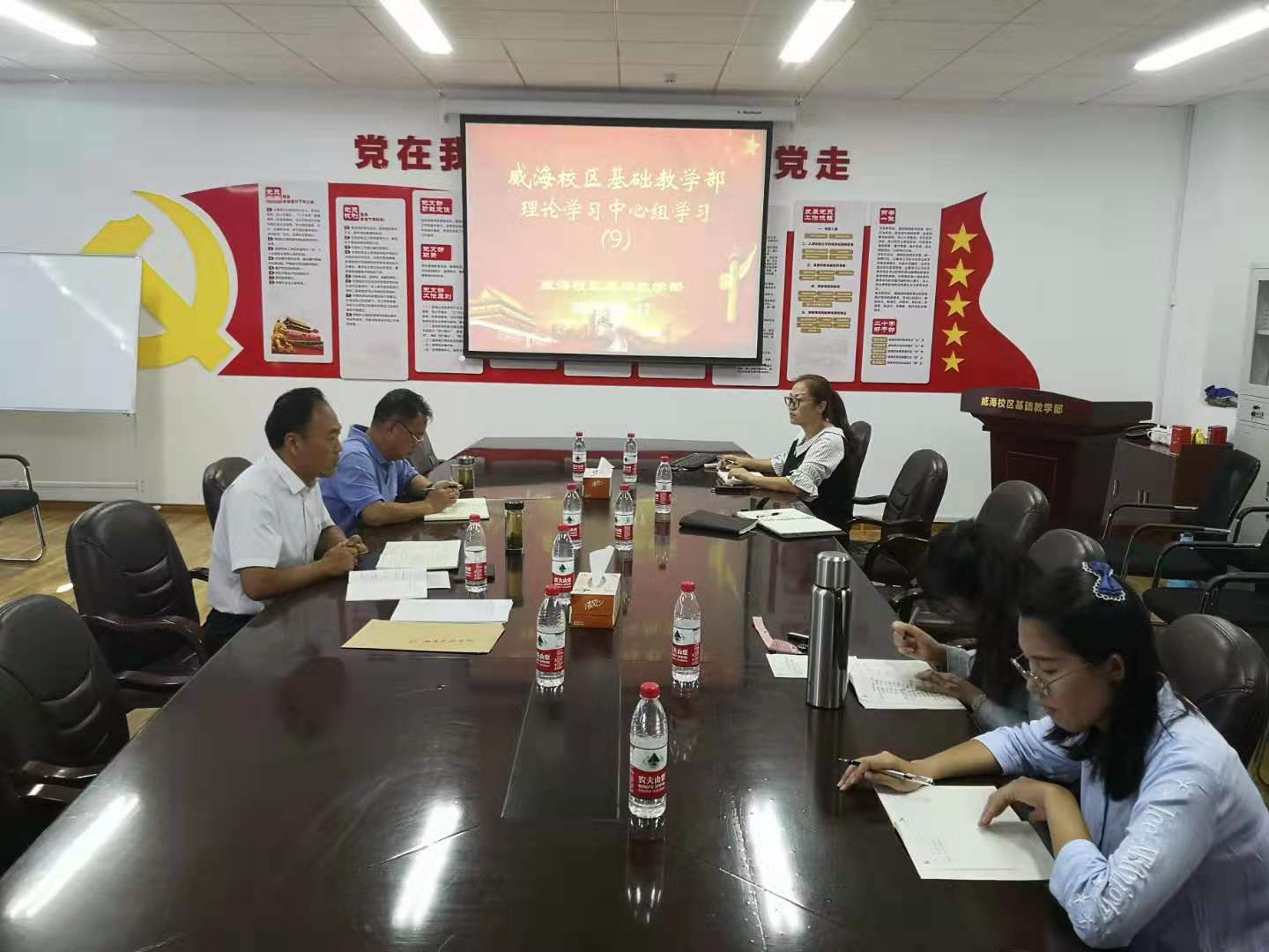9月17日上午,基础教学部党总支理论学习中心组在威海校区教学楼A405举行“不忘初心、牢记使命”主题教育专题学习。会议由基础教学部党总支书记刘庆波主持,各党支部委员会委员参加学习。