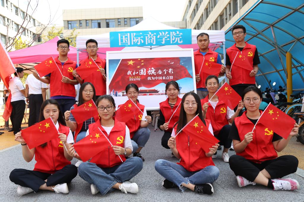 为庆祝中华人民共和国成立70周年,深入贯彻落实习近平新时代中国特色社会主义思想,加强对大学生思想价值的引领,培养大学生的爱国主义精神,近日,国际商学院马克思主义理论社团蔚蓝求是社组织开展“我和国旗同框”主题教育活动。