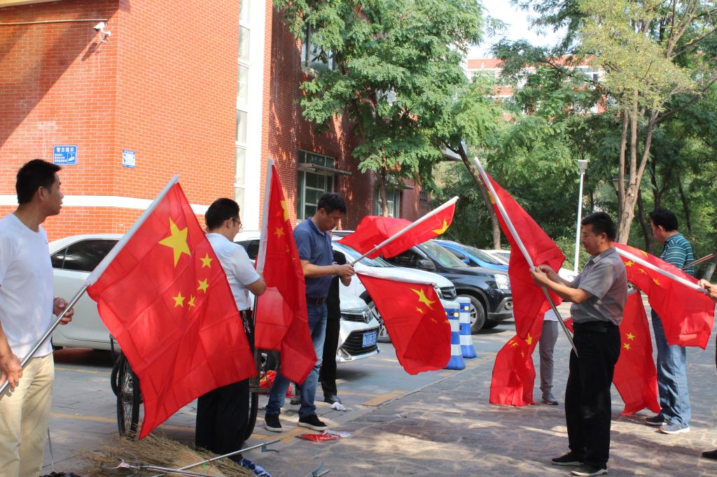 为庆祝中华人民共和国成立70周年,丰富“不忘初心、牢记使命”主题教育学习教育形式,结合创建省级文明校园工作部署安排,9月27日上午,无影山校区综合管理办公室党支部开展了“挂国旗 迎国庆 美化校园在行动”主题党日活动。