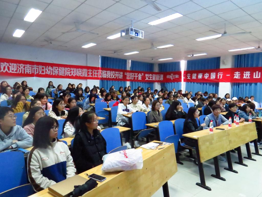 10月18日,我校在2号教学楼举办女大学生生理健康教育主题讲座,本次讲座邀请济南妇幼保健院郑晓霞主任主讲,我校200余名女大学生参加活动。