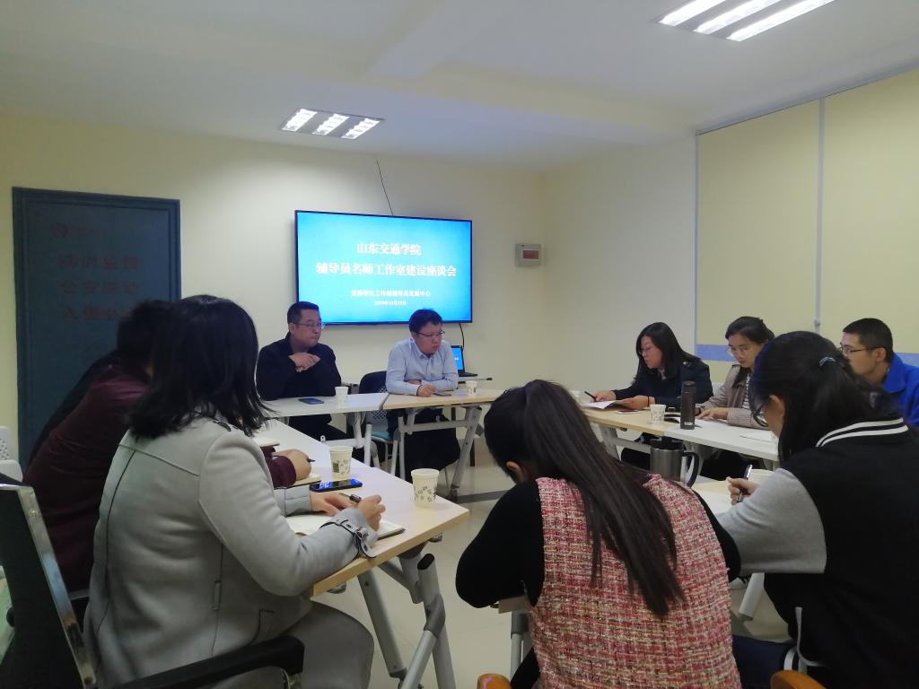 10月21日下午,我校辅导员名师工作室建设座谈会在长清校区心理健康教育中心团辅室举行。教育部高校辅导员培训和研修基地(山东大学)办公室副主任王海宁受邀参加会议。我校辅导员名师工作室项目学院学生工作负责人和项目负责人参加会议。座谈会由党委学生工作部部长于翊广主持。