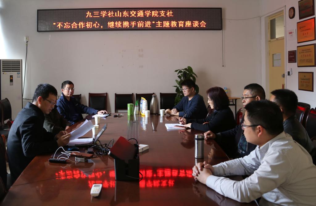 10月30日下午,九三学社山东交通学院支社召开“不忘合作初心,继续携手前进”主题教育座谈会。座谈会由支社主委张广渊主持,部分支社社员参加了座谈会。