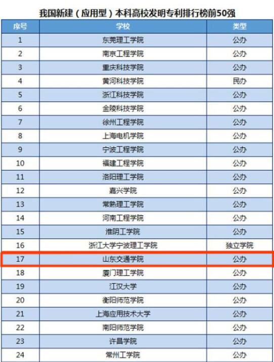 日前,根据人民日报、人民网、新华日报消息,“中国新建(应用型)本科高校综合竞争力排行课题组”(ICAUR)正式发布“中国新建(应用型)本科高校科研竞争力排行榜”,我校发明专利在693所高校中位列第17位,山东省新建本科高校第1位。
