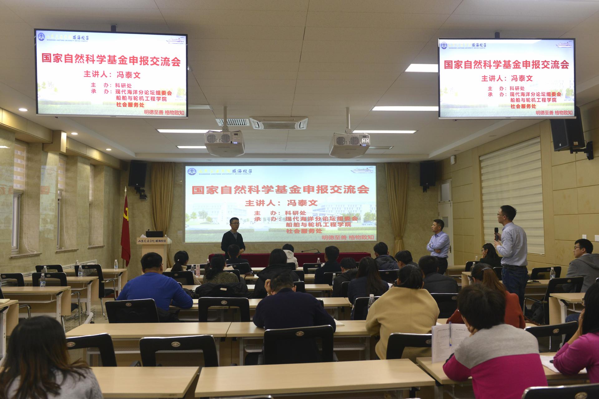 11月21日下午,由科研处主办,现代海洋分论坛组委会、船舶与轮机工程学院及威海校区社会服务处承办的博士论坛现代海洋分论坛(第三期)讲座在威海校区第一报告厅举行。论坛邀请哈尔滨工业大学博士生导师、山东省泰山青年学者冯泰文教授作了题为《国家自然科学基金申请经验交流》的讲座。论坛由船舶与轮机工程学院院长王明雨主持。