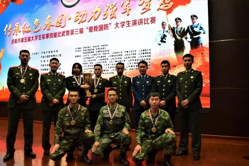 11月24日,济南市第五届大学生军事技能比武在济南市长清区国际园博园落下帷幕。经过3天的激烈比拼,我校军魂连代表队取得定向越野二等奖和优胜单位的优异成绩。