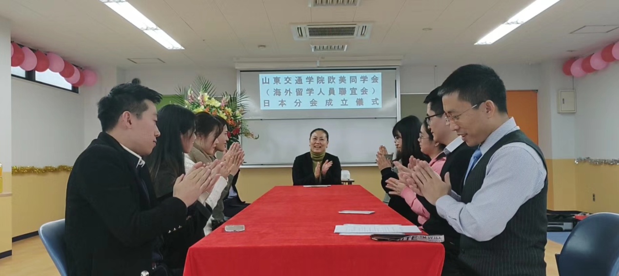 我校欧美同学会会长宋岩岩受党委统战部委托代表学校欧美同学会(海外留学人员联谊会)对日本分会的成立表示祝贺,并通过分会向300多名在日本留学、工作的山东交通学院学子致以问候。她希望大家时刻情牵祖国、心系交院,立足日本,开拓海外,努力成为留学报国、报校的人才库、建言献策的智囊团、开展民间外交的生力军。