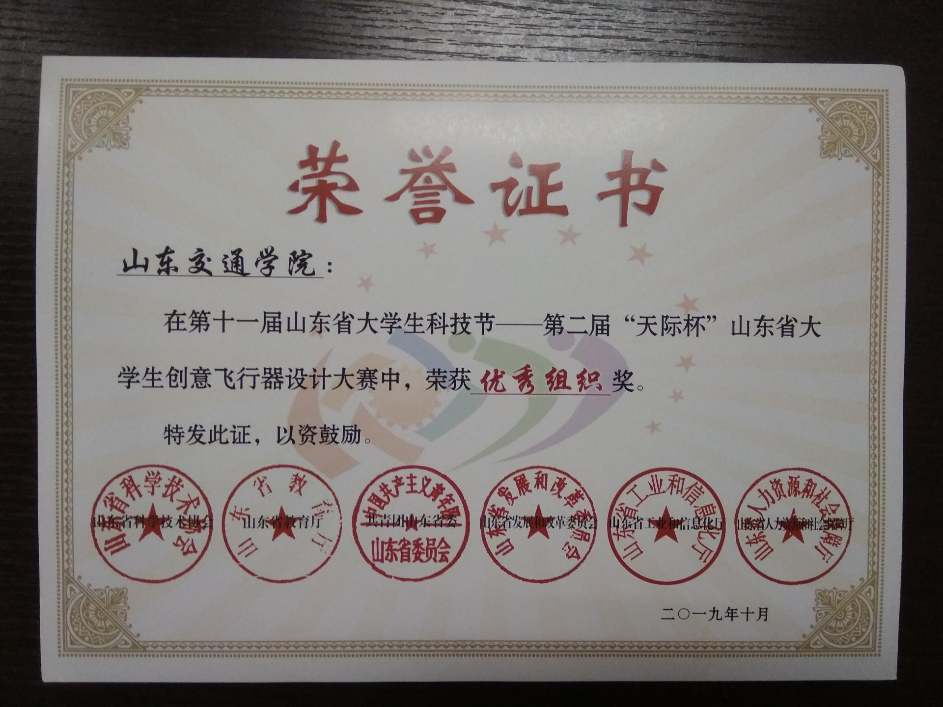 近日,第二届“天际杯”山东省大学生创意飞行器设计大赛组委会发布公告,我校荣获优秀组织奖。
