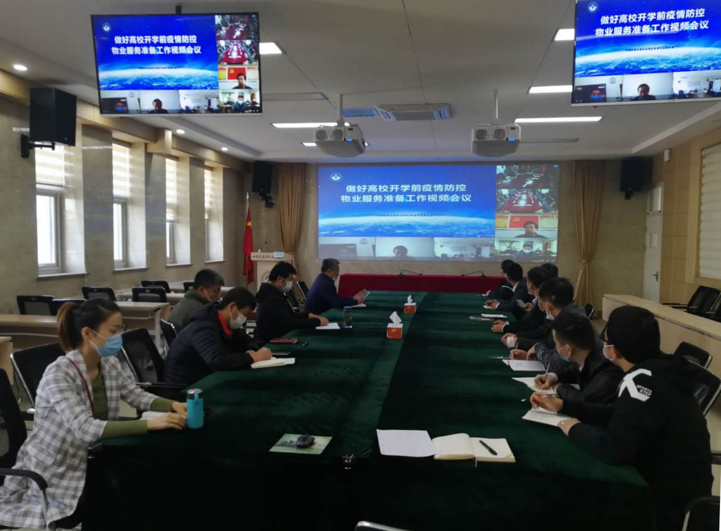 4月21日下午,威海校区机关三支部与疫情防控服务保障临时党支部联合组织党员大会,参加中国教育后勤协会物专会组织的《做好高校开学前疫情防控物业服务准备工作》视频会议,在校区承担服务保障工作的四家物业单位代表列席会议。
