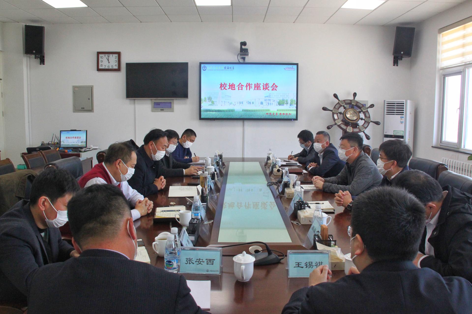 刘庆波对客人的到来表示欢迎,表示威海校区要加强与地方合作,通过校企合作及产教融合融入威海,服务地方经济发展,同时提升校区服务地方能力。