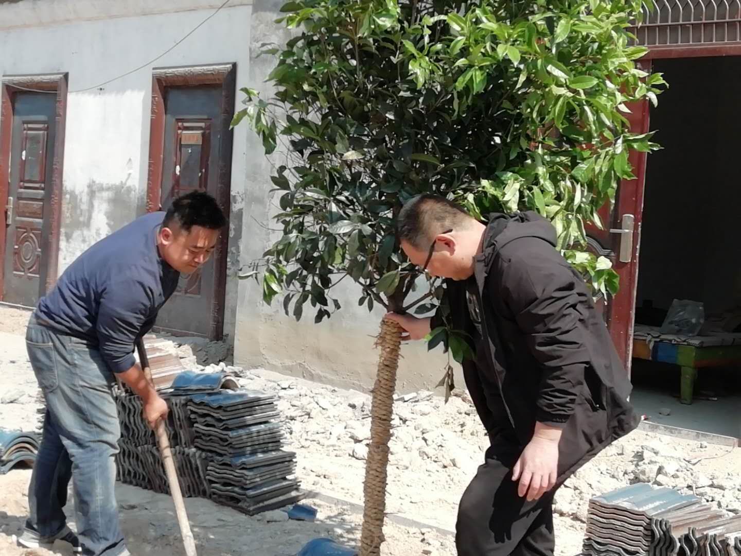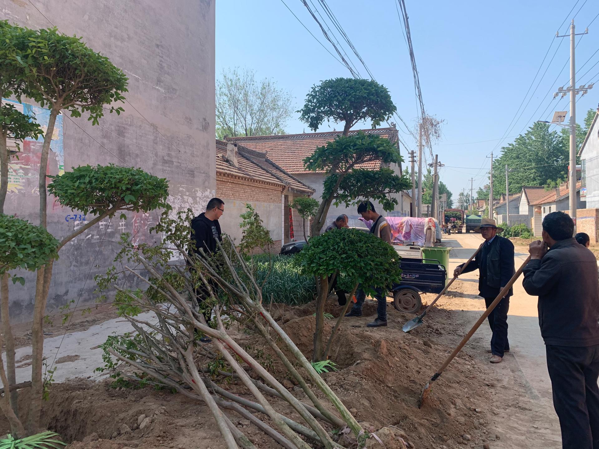 近日,我校第一书记帮包村汶上集镇党楼村一派热火朝天的忙碌景象。植树、种花……全长2000米、绿化面积800平方米的中心街道和周转房中心公园绿化工程顺利完工。