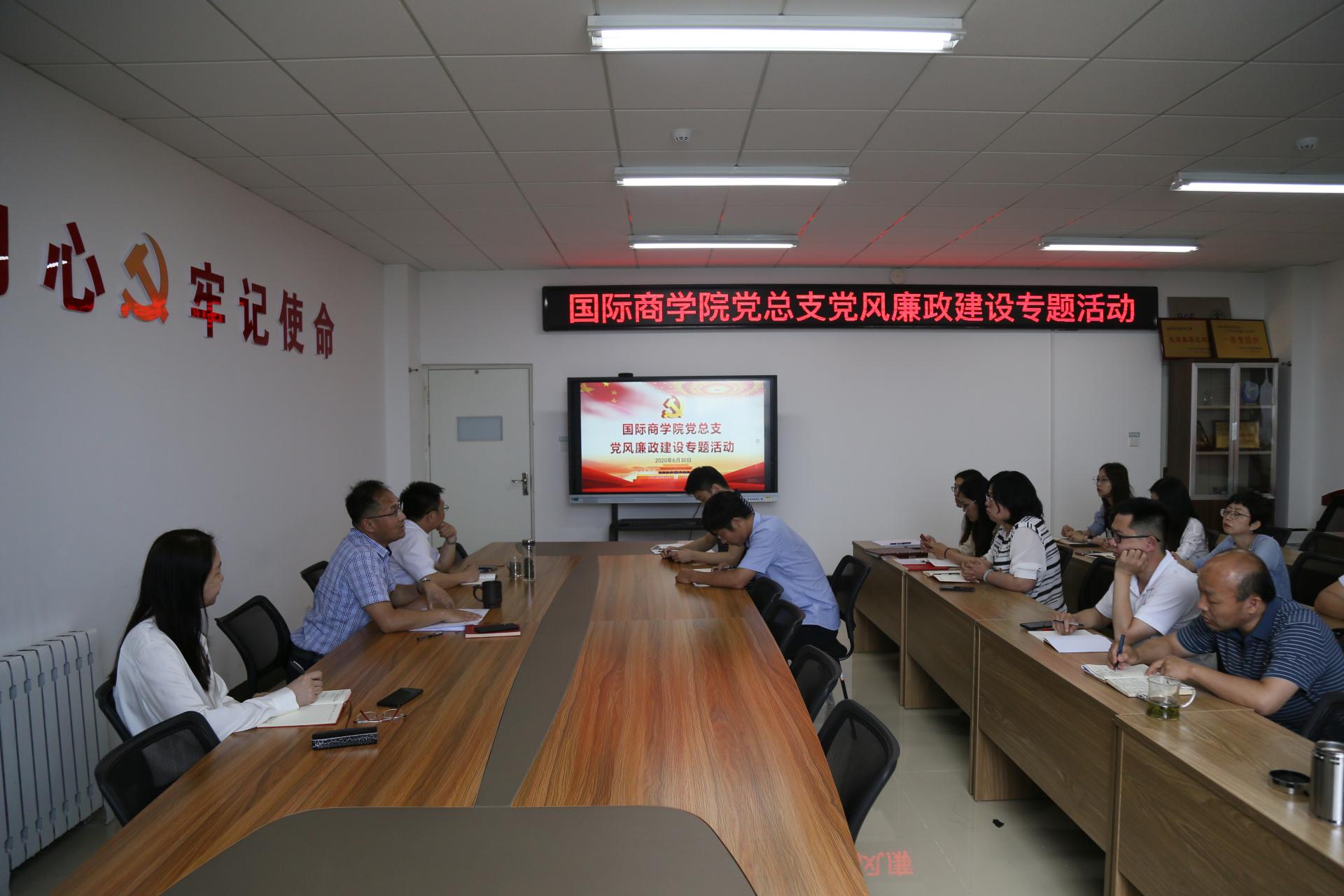 为加强学院党风廉政建设,6月30日上午,国际商学院举办党风廉政建设专题活动。会议由学院党总支书记滕怀国主持,全体领导班子及教工党员27人参加。